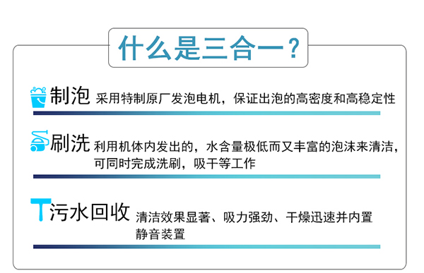 利用機(jī)體內(nèi)發(fā)出的,水含量極低而又豐富的泡沫來(lái)清潔,可同時(shí)完成洗刷,吸干等工作。