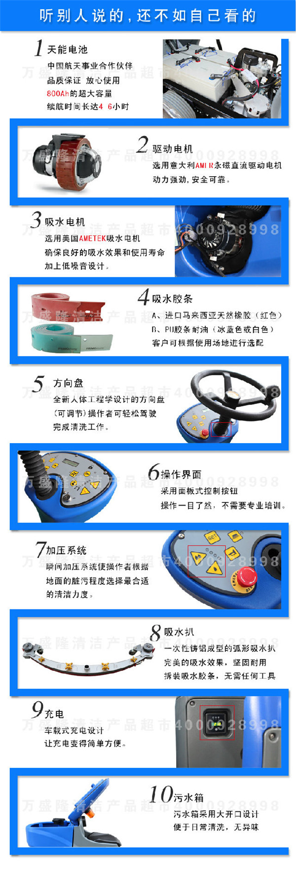 1、全新的人體工程學設計的方向盤,操作者可輕松駕駛完成清洗工作。